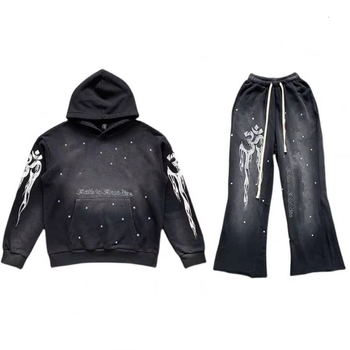 חומצה שטיפה זיעה חליפות כותנה zip עבה עד רקמה אפליק רקמה אפודה מלאה בגדי קפוצ 'ונים ו טרנינג סטים לגברים